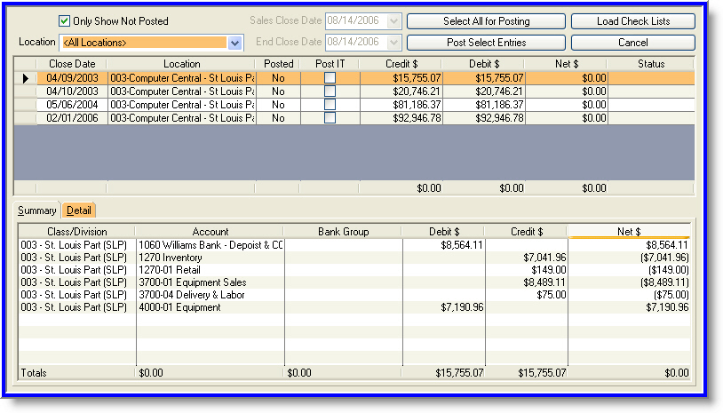 The following journals are automatically generated and posted by the tool: Sales, Purchase, Cash Disbursement, and Bank Reconciliation. After review and approval by accounting, Sales Journals are generated and posted. Sales, receivables, payments, and cost of goods sold are based on daily closeouts for each location. Purchase Journals are generated and posted as a result of entering an accounts payable invoice. Cash Disbursement Journals follow the completion of a check run within the invoice payment process. Bank Reconciliation Journals reflect discrepancies between the bank statement and the bank statement reconciliation, as well as any applicable bank fees.