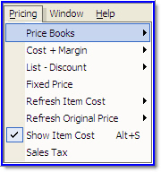 After items have been added to a quote, sales order, or invoice, the user (if assigned permission) can modify the pricing by adjusting the selling price in the following ways: discount from list on a line or order basis, cost plus margin on a line or order basis, or a fixed price with or without sales tax. Regardless of the method, the tool automatically calculates the new list price for each line on the order. Optionally, the tool can also prompt for authorization if the selling price is below a preconfigured price level.